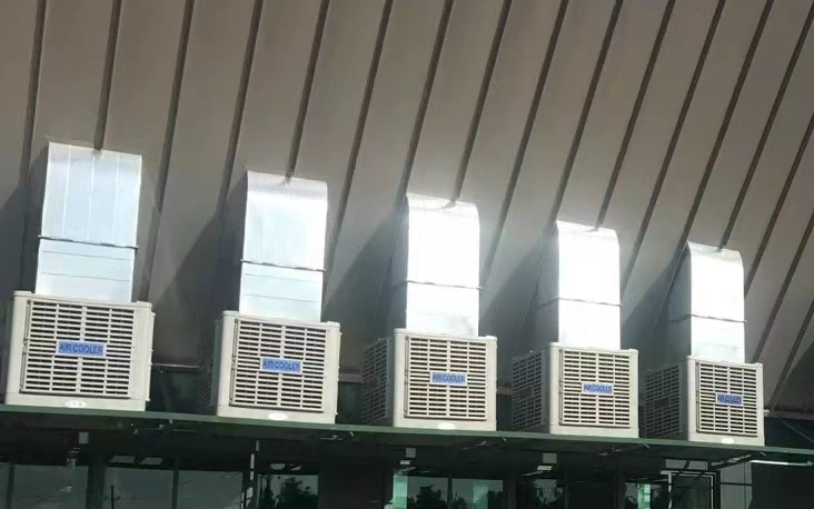 工業冷風機是無壓縮機、無冷媒、無污染的環保型產品,它是利用室外全新鮮空氣蒸發冷卻原理降溫并與室內進行對流換氣從而達到室內通風降溫的目的。